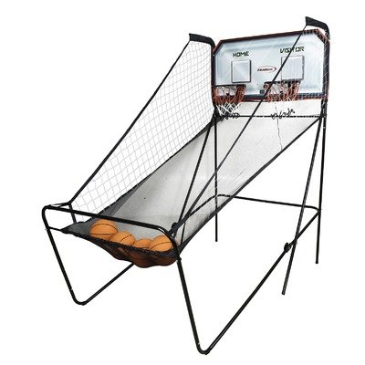 Challenge your friend to see who can score the highest with this Halex(r) 2-player arcade electronic basketball game. It's made with a durable steel frame and laminated medium-density fiberboard designed with basketball graphics. The game includes 4 basketballs and has 2 LED electronic displays that allow you to keep track of your score.