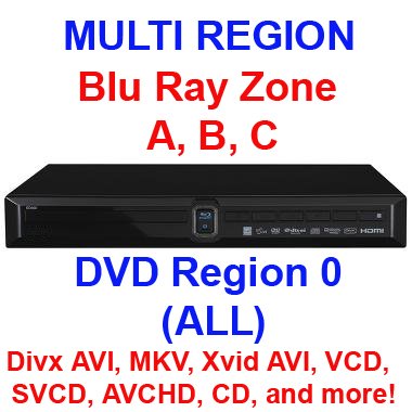 Plays Blu Rays and DVD from any country: Blu Ray A, B, C Multi Region Multi Zone; DVD region 0 (all - region free), NTSC and PAL compatible . Plays almost any file format including Divx avis (the player is Divx Ultra certified) MKV Xvid avi VCD SVCD AVCHD music cds. . Plug in in any country (110-240 voltage. no votage converter needed. just a prong adapter if to be used outsde of North America). . Connect to a network via the Ethernet port or stream from a USB. . Fast on loading both DVDs and Blu-Ray discs. Also remembers your place on DVDs if you remove them .International player version: Play discs from any country (multi region/region free). 110-240 voltage. NTSC and PAL compatible- DVD REGION 0 BLU-RAY REGIONS A. B. C - Connect a network via the Ethernet port or stream from a USB. This player will play almost any file format: Divx avis (the player is Divx Ultra certified). MKVs. Xvid avis. VCDs. SVCDs. AVCHDs. music cds. etc. Connect through the best connection available for your TV - HDMI. Component Video. Composite Video. Coaxial. Optical. Progressive scan and upscaling DVDs to High Def (720p. 1080i. 1080p). Player Specifications: Blu-ray Disc Player * BD profile 2.0 * BD live * PAL/NTSC output format up to 1080p FORMAT- MPEG2/H.264/VCI * AC3 * DTS * Linear PCM * DTS HD * Dolby Digital Plus * Dolby True HD MEDIA HD Disc Format - Blu-ray Disc * BD-Rom/R/RE * DVD Video * DVD- RW/R * DVD+ RW/R * CD-DA/CD-RW/R .OUTPUT TERMINALS - Coaxial Digital Audio Ouptuts: 1 * USB Slot: 1 * Composite Video Ouptuts: 1 * Analog Audio Outputs (L/R): 2 channels * Analog Audio Outputs: 7.1 channels * (Optional) * Analog Audio Outputs (Multi CH): 1 (5. 1 CH) * Component Video Outputs (L/R): 1 * HDM Outputs (Version 1.3): 1 . VIDEO PLAYBACK. Picture Enhancement: Progressive Scan. Video Upscaling. High Def (720p. 1080i. 1080p) * Compression Formats: H.264. VC-1. MPEG2. MPEG4 * Playback Media: BD Profile 2.0. BD-R/RE 2.0. DVD. DVD-Video. DVD+R/+RW. DVD-R/-RW. DivX . AUDIO PLAYBACK. Sound System: Dolby Digital. DTS. Dolby Tru HD. DTS 2.0 + Digital Out * Compression Format: MP3. PCM. Dolby Digital DTS * Playback Media: MP3-CD. CD-R/RW. CD. MP3-DVD .CONNECTIVITY - HDMI. USB. Ethernet. Component Video. Composite Video. Coaxial. Optical